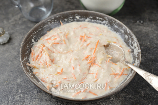 Переложите в тесто натертую морковку.