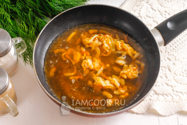 Следом влейте пиво любого сорта и аккуратно перемешайте все, чтобы мука растворилась в соусе. Убавьте нагрев до умеренного.