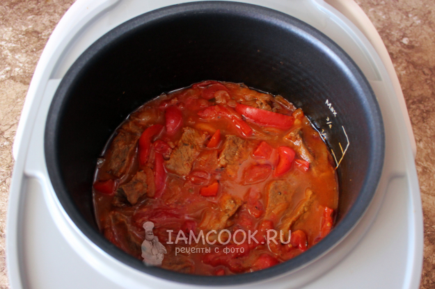 Тушите чашушули по-грузински из говядины в мультиварке ещё оставшиеся полчаса.