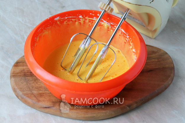 Затем займитесь желтками. Их не обязательно долго взбивать, главное, чтобы масса посветлела, а часть сахара растворилась.