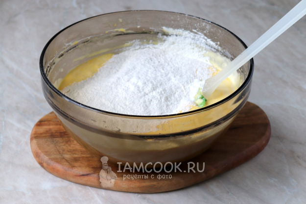 Затем введите просеянную пшеничную муку.