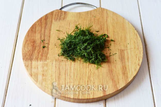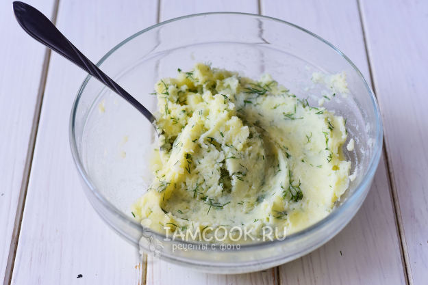 В картофельное пюре добавим измельченный укроп и перемешаем.