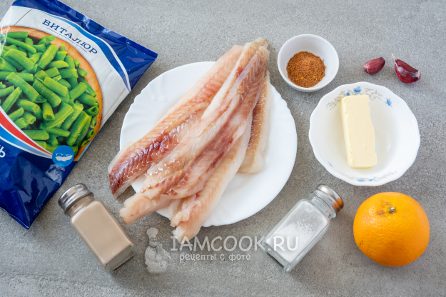 Для приготовления стручковой фасоли с рыбой в духовке вам потребуются все продукты из списка ингредиентов. Замороженную фасоль выбирайте качественную, чтобы в ней не было жёстких перегородок, которые трудно и неприятно жевать. Приправу для рыбы выбирайте на свой вкус. Я обычно беру какую-то готовую смесь.