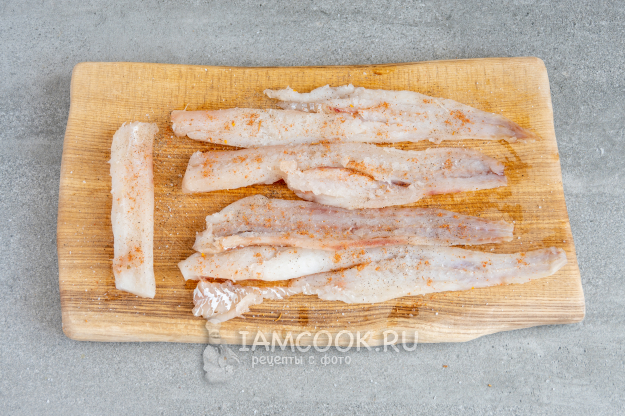 Первым делом займемся рыбой. Промытую рыбу можно слегка отжать от лишней воды и промокнуть бумажными полотенцами. Далее мы ее солим, перчим и посыпаем специями для рыбы с двух сторон.