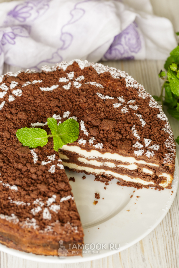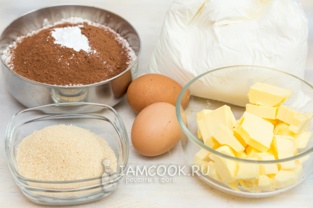 Для приготовления шоколадного торта с творогом подготовьте продукты по списку.