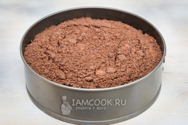 Выложите часть на дно формы, застеленной пергаментом. Равномерно распределите.
