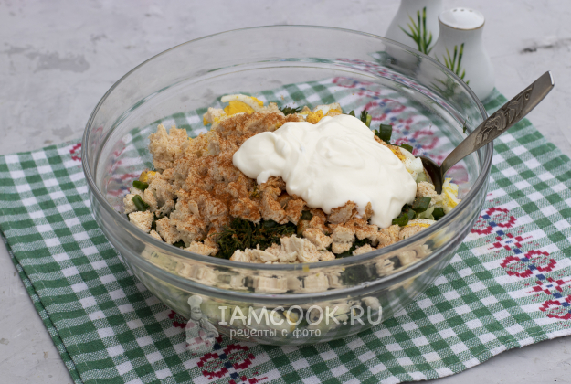 Салат тщательно перемешать. Такой салат следует готовить на один раз и не оставлять на следующий день.