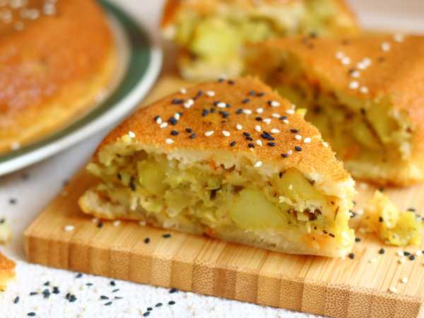 Пирог с капустой и фаршем в мультиварке обычно получается меньше размером, чем варианты в духовке... и это для меня его единственный минус.