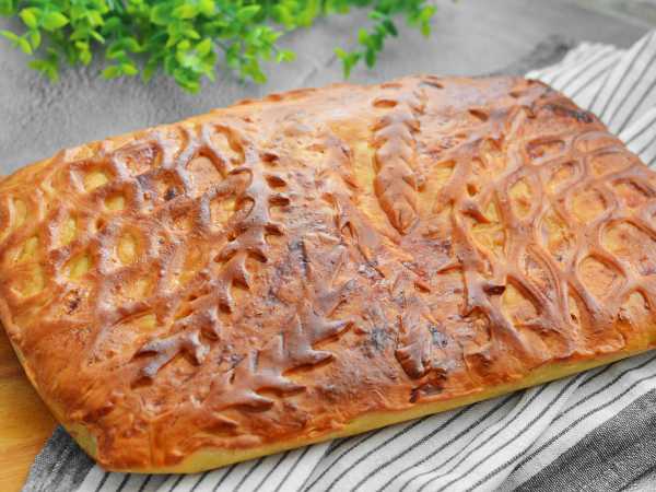 Укройте второй половиной теста и местами подоткните края верхней части теста к нижней. Они слипнутся, чтобы потом и переворачивать удобнее было, и начинка при извлечении не выпадала из краёв.