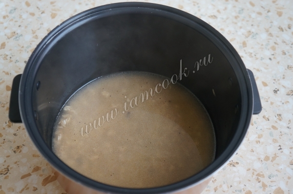 В рис наливаем 1,5 стакана кипятка и в том же режиме доводим до кипения. Затем выбираем режим «Тушение» и готовим 12 –15 минут.