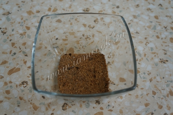 Соединяем и все специи, соль, сахар. Измельчаем, чтобы гвоздика стала небольшими кусочками. Можно также использовать целый кориандр и самостоятельно его в ступке измельчить.
