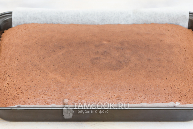 Сразу же, как вынули бисквит из духовки, переверните форму вверх дном на решетку.