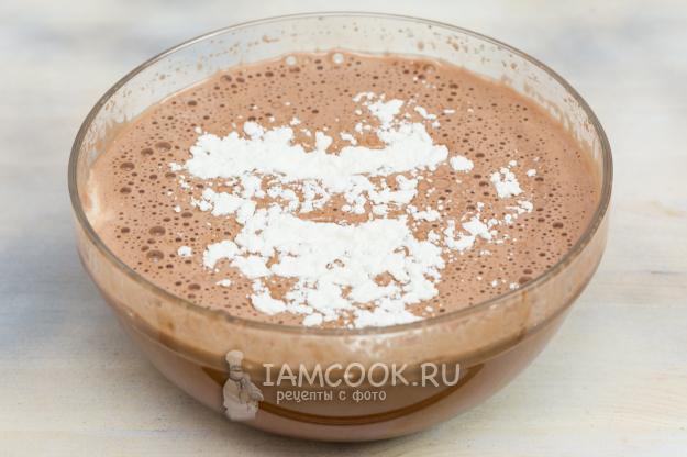 Затем добавьте муку, смешанную с разрыхлителем и содой.