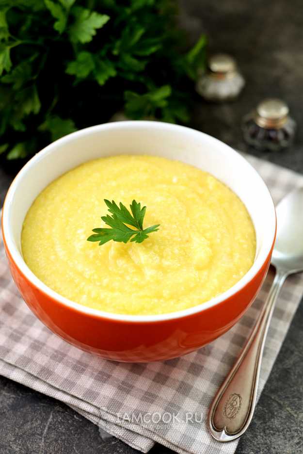 Это один из самых удачных способов приготовления поленты, поскольку не нужно все время стоять возле плиты, помешивать кашу и бояться, что она пригорит к казану. Полента получается очень нежной, воздушной, совсем не такой, как приготовленная на плите. Сыр в идеале должен быть пармезан, но я его в этот раз не смогла купить, поэтому заменила на тот, который всегда лежит в холодильнике, при этом полента получилась не менее вкусной.