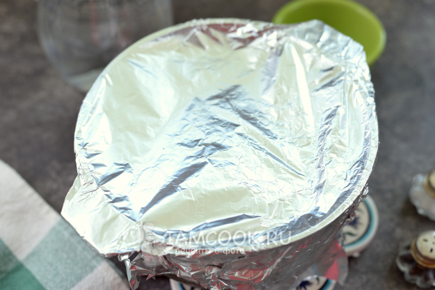 Плотно замотайте казанок фольгой и отправьте его в предварительно разогретую до 170 градусов духовку на 25-30 минут без конвекции.