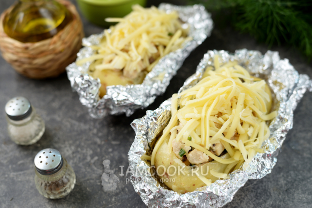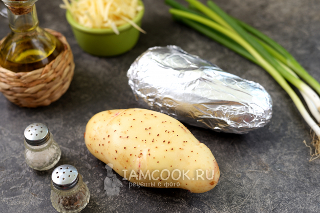Каждую картофелину заверните в фольгу, отправьте в духовку до полной готовности. У меня в этот раз при 200 градусах ушло ровно 40 минут, готовность проверьте зубочисткой.