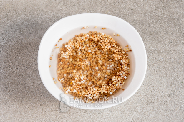 Гречку обязательно перебираем от мусора и камней (чтобы зубы в процессе поедания остались целыми). А также промываем гречку в воде и грязную воду сливаем.