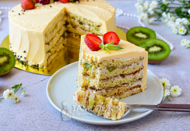 Торт «Молочная девочка» с киви и бананом готов. Приятного чаепития!