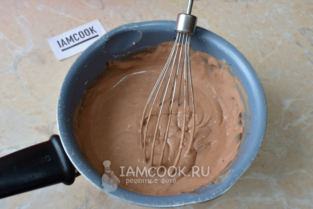 Соединяйте шоколад и сливки. Смешивайте обе массы венчиком.