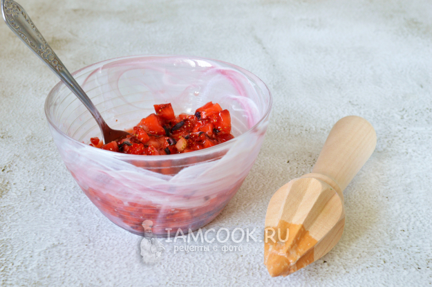 Половину нарезанной клубники смешать с лимонным соком, медом и измельченным базиликом.