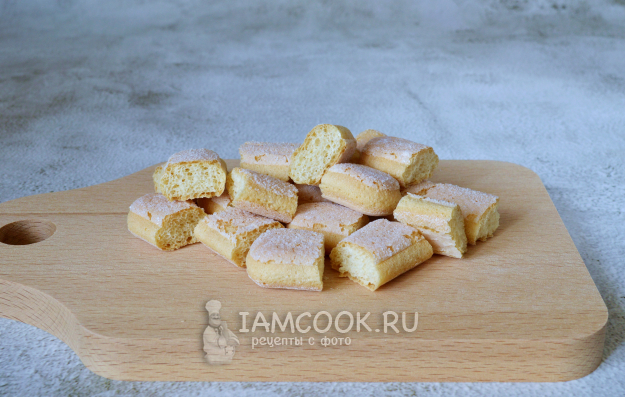 Каждое печенье савоярди разрезать на 4 части.
