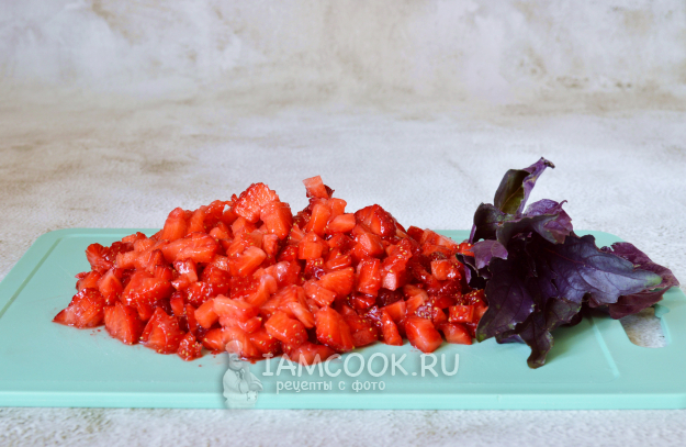 Клубнику тщательно вымыть, обсушить и нарезать кубиком.