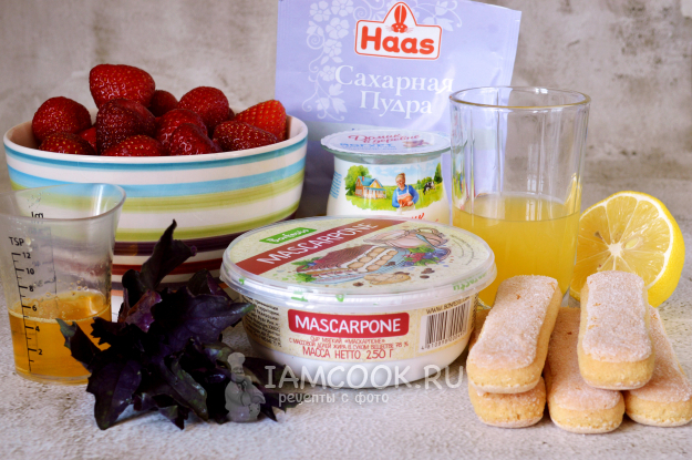 Возьмите продукты для приготовления клубничного десерта в стаканах.