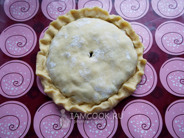 Выпекать пирог при 180 градусах до румяного цвета. У меня ушло 20 минут.