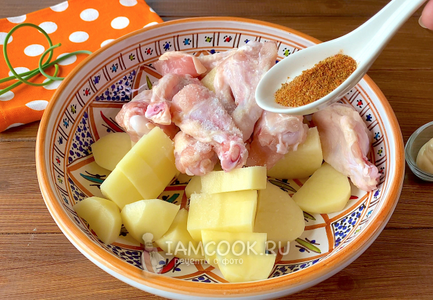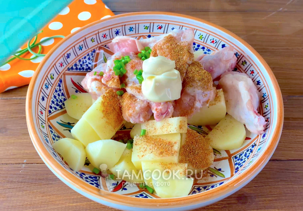 Итак, подготовьте все необходимые продукты для приготовления картошки с курицей в микроволновке.