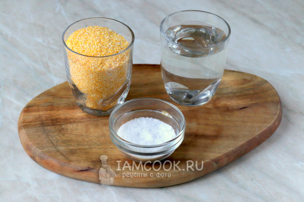 Возьмите необходимые ингредиенты для приготовления рассыпчатой кукурузной каши на воде.