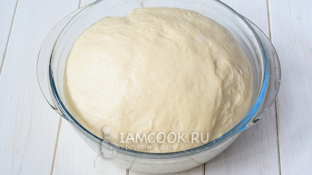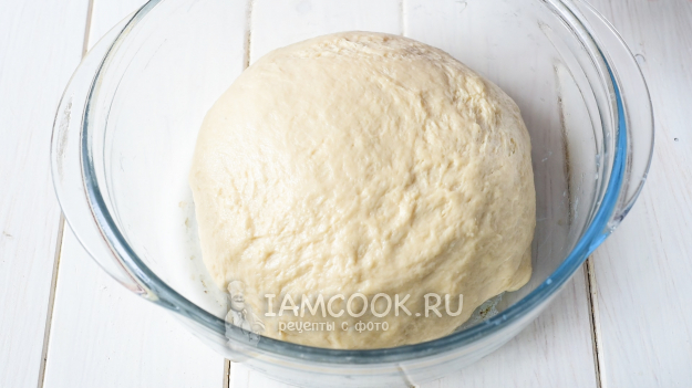 Начнем замес теста сначала ложкой, а затем продолжим руками. Тесто должно получиться мягким и почти не прилипать к пальцам. При необходимости добавляем немного муки для получения необходимой консистенции теста. Тесто округляем в миске и, накрыв кухонным полотенцем, оставим на час подходить в теплом месте.