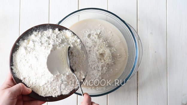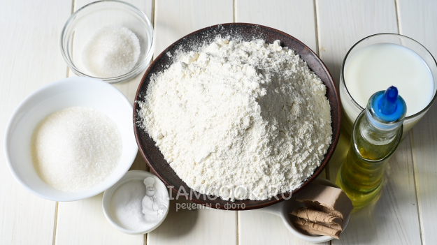 Подготовим необходимые продукты для молочных калачей. Удобнее всего муку просеять заранее.