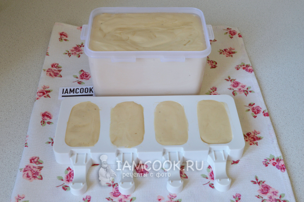 Выложить массу в удобную для замораживания форму, можно порционно. Отправить в морозилку на 5 часов (порционное мороженое будет готово быстрее).
