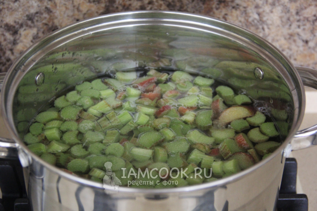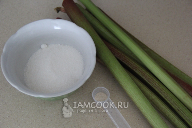 Возьмите продукты для приготовления кваса из ревеня в домашних условиях. Стебли ревеня намыть, чистить от пленки не надо.