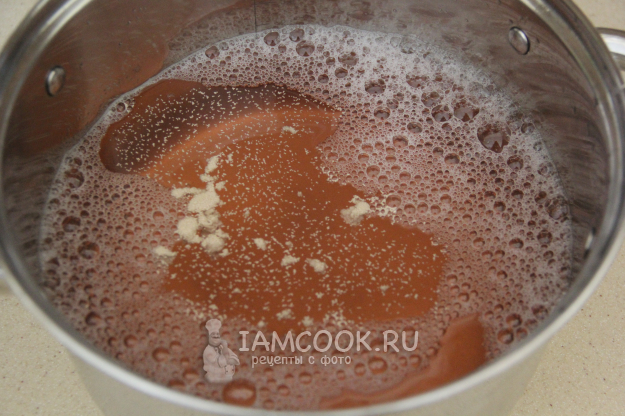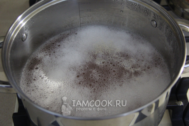 Настой перелить обратно в кастрюлю и добавить сухие дрожжи. Перемешать, накрыть кастрюлю крышкой и оставить на ночь на кухонном столе.