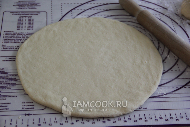 Готовое тесто обмять и раскатать в круг примерно 40x40 см.