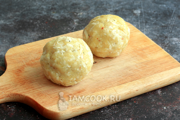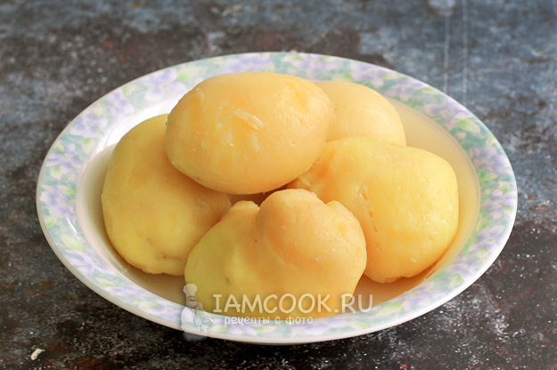 Картофель отварите в кожуре, очистите и разомните или натрите на терке. В кожуре варят картофель для того, чтобы она не набирала воду при варке и не получилась водянистой. Мне не понадобилась вся картошка, ее ушло меньшее количество, хватило трех крупных клубней (500 г).