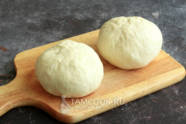 Тем временем тесто подошло. Разделите его пополам и сформируйте две лепешки.