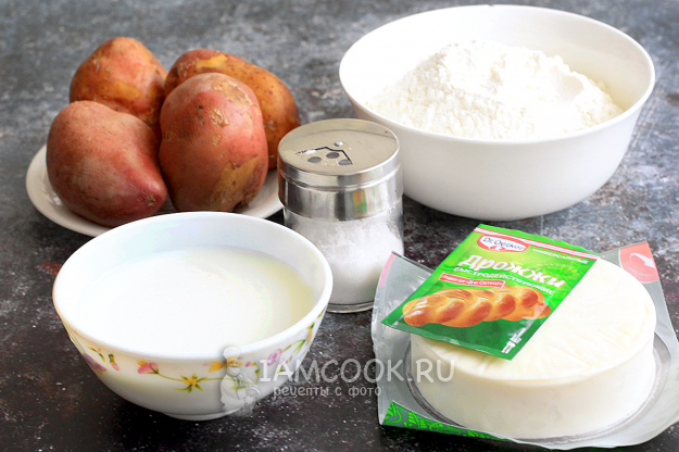 Для приготовления карачаевских хычинов с сыром и картошкой на молоке подготовьте всё необходимое по списку.