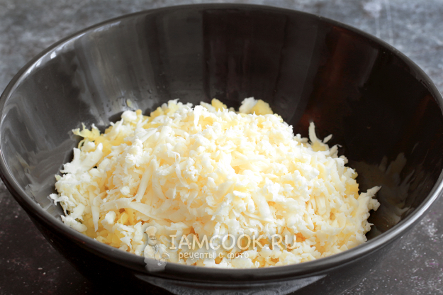 К мятой картошке добавьте тертый сыр, перемешайте. Добавьте душистый перец или другие специи, проверьте на соль. Если сыр очень соленый, то соль больше не добавляйте.
