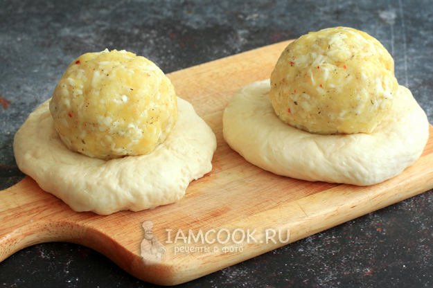 Обжимая тесто со всех сторон, сформируйте закрытый шар. Лишнего теста не остается и ничего срезать не нужно.