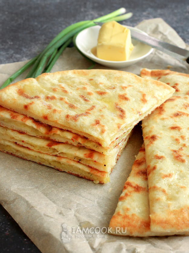 Карачаевские хычины с картошкой и сыром готовы. Подавайте их, разрезав на 4 части. Приятного!