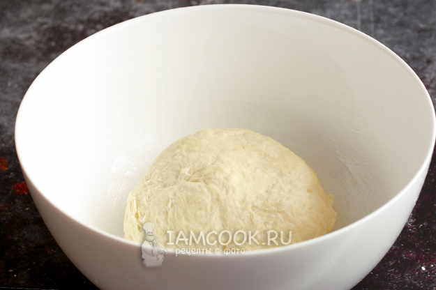 Тесто получается мягким и немного липким, но муку больше не добавляйте. Если вас раздражает липкость теста, то слегка обмакните руки в растительное масло. Вымесите тесто на столе минут 5 и оставьте подойти в теплом месте под полотенцем.