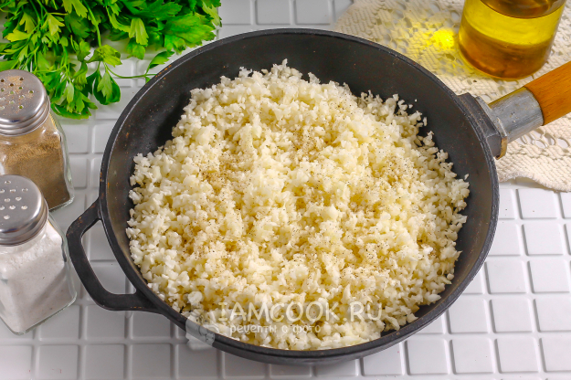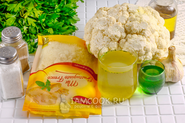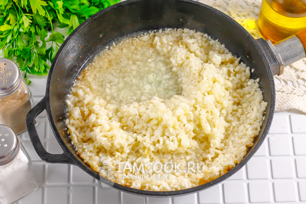 Подготовьте необходимые ингредиенты для создания ложного ризотто из цветной капусты.
