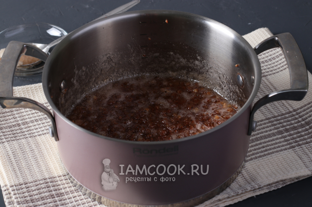 Кастрюлю поставить на огонь, довести до кипения. Варить джем, помешивая и снимая с поверхности образующуюся пену, 10-15 минут. Если вы готовите большее количество джема - от 500 г, то варить можно до 20 минут.