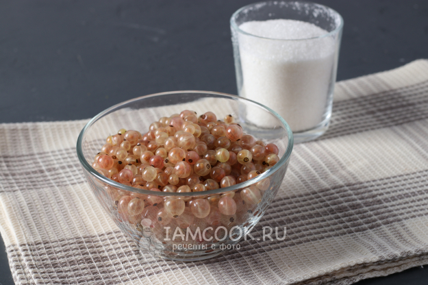 Для приготовления джема из белой смородины на зиму подготовить из списка необходимые ингредиенты.