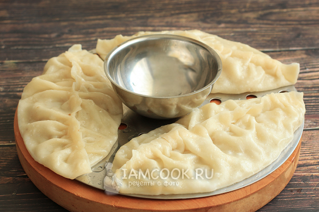 Лист мантышницы смажьте растительным маслом и выложите готовые изделия. Ханум также смажьте сверху растительным маслом и поставьте готовиться на пару, при тихом кипении воды в мантышнице на 40 минут.