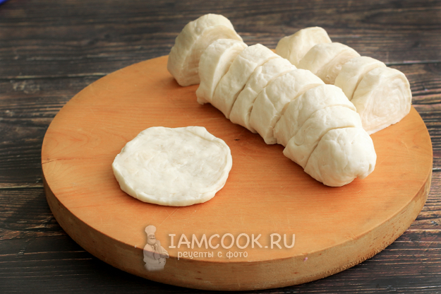 Тесто в пакете стало мягче и послушнее. Скатайте из него колбаску и нарежьте на одинаковые кусочки. Величина зависит от ваших предпочтений. Я делала большие ханум.