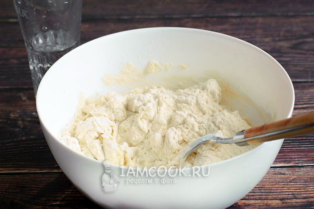 Из воды, муки и соли замесите плотное тесто. Воду добавляйте в муку постепенно, так как разная мука может взять разное количество жидкости.