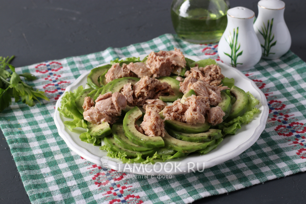 Посыпать листочками петрушки, полить оливковым маслом и подать к столу - салат с тунцом, авокадо, яйцом и огурцом готов к дегустации.